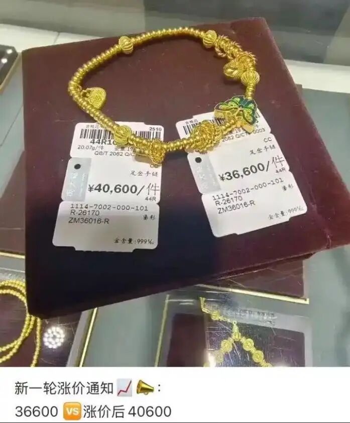 如果算上3月份和10月份的提价,这也是周大福在今年对一口价黄金产品的第三次提价。在社交平台上,多地周大福门店销售表示已经陆续收到新价签。