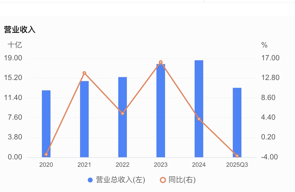 进入2025年,经营压力进一步加剧。2025年三季报显示,同仁堂前三季度实现营业收入133.08亿元,同比下降3.70%;归母净利润11.78亿元,同比下降12.78%。第三季度单季表现更为疲软,营业收入35.39亿元,同比下降12.76%;利润总额同比下降36.43%。公司呈现营收与净利润双降的困局。