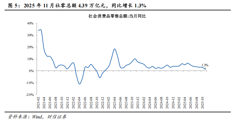 经济数据跟踪:1)11月社零数据,内生动力偏弱叠加高基数因素影响下,增速继续回落。11月份,社会消费品零售总额43898亿元,同比增长1.3%。其中,除汽车以外的消费品零售额39444亿元,增长2.5%。1—11月份,社会消费品零售总额456067亿元,增长4.0%。其中,除汽车以外的消费品零售额411637亿元,增长4.6%。2)11月CPI数据,同比为去年3月份以来最高,环比略降。11月,CPI同比上涨0.7%,涨幅比上月扩大0.5个百分点,为去年3月份以来最高,同比涨幅扩大主要是食品价格由降转涨拉动,特别是鲜菜价格上涨;核心CPI同比上涨1.2%,涨幅连续3个月保持在1%以上。CPI环比下降0.1%,主要受服务价格季节性下降影响。