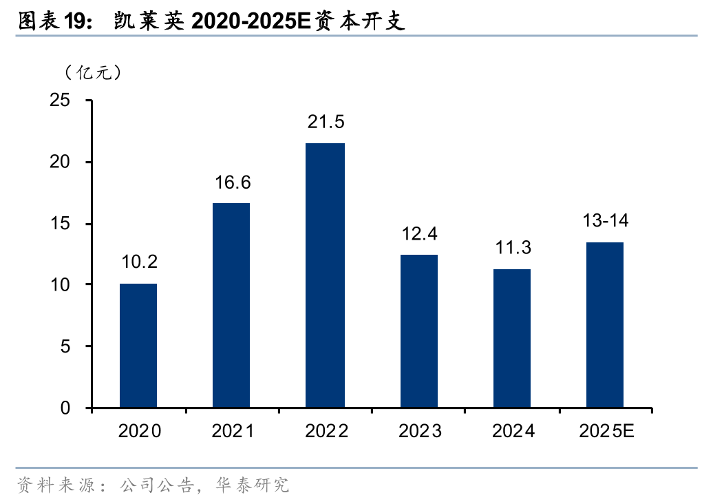 3)凯莱英:公司1H24、2H24、1H25收入同比增速分别为-41.64%、-3.01%、+18.20%,边际持续提速;公司1H25毛利率为43.39%,同比增长1.34pct;公司预计2025年资本开支为13-14亿元,同比进一步提升,持续强化化学大分子、生物大分子、制剂等新兴业务相关产能。