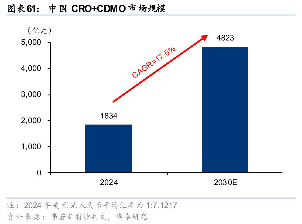 行业规模持续提升,中国CXO企业竞争力明显。伴随医药行业的持续快速发展,CXO企业在周期漫长、流程复杂且投入高昂的药品研发及生产过程中所发挥的作用日益重要。根据弗若斯特沙利文的资料,2024年全球CRO+CDMO市场规模为1740亿美元,其预计到2030年将达3444亿美元(CAGR=12.1%);其中,2024年中国CRO+CDMO市场规模约占全球总规模的14.8%,其预计到2030年将达4823亿元(CAGR=17.5%),整体快于全球行业平均水平。我们看好中国CXO企业积极展现自身竞争力,助力国内市场更快增长,主因:1)全球新药研发及外包活动持续推进,驱动行业需求积极释放;2)中国CXO底层优势明显,热门板块产能有序扩张。