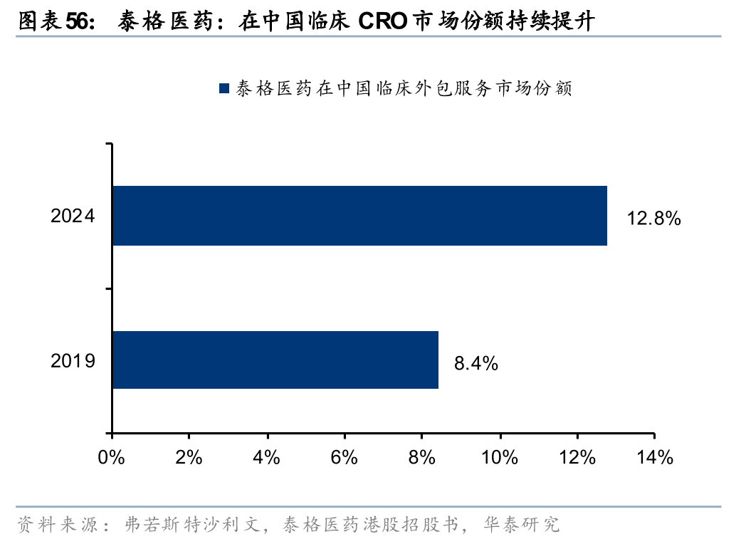 大浪淘沙,尾部出清,份额向头部集中。我们认为,经历本轮相对漫长的下行期后,国内CXO市场已格局重构,份额向头部持续集中。其中泰格医药国内临床CRO市占率从19年的8.4%提升至24年的12.8%,国内安评行业CR5市占率从21年的46.4%快速提升至22年的52.0%。