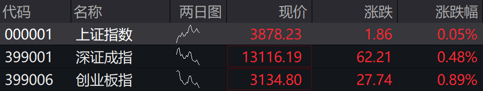 沪指高开0.05%,深成指高开0.48%,创业板指高开0.89%。