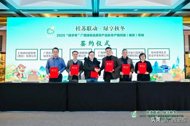 12月18日至19日,由广西壮族自治区农业农村厅主办的2025“桂字号”绿色优质农产品秋冬产销对接活动在宁举行。本次活动以“绿色引领、区域联动、产销衔接、合作共赢”为核心理念,通过专场推介、产销签约、市集展示、线上直播等多维度形式,推动桂苏两省农业深度合作,助力“桂字号”优质农产品进军长三角市场,为乡村产业振兴注入新活力。
