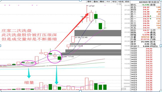 对于在绵绵跌势中突然放巨量的涨停的个股需要谨慎观察,看是否属于老庄自救的行为。或者主力对未来趋势没有信心半路出逃的行为。