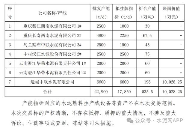 而从天山股份此次发布的公告来看,上述两个新建项目所需的置换产能指标,目前已公开挂牌转让。这也意味着,此前规划的两条水泥熟料新建生产线将不再推进建设。