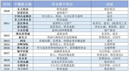 据《华夏时报》记者统计,浑水成立10年,做空了18家中概股(以在中国大陆的资产或营收为公司主体组成部分的股票),下表为浑水公司近年做空的中概股及进展情况。