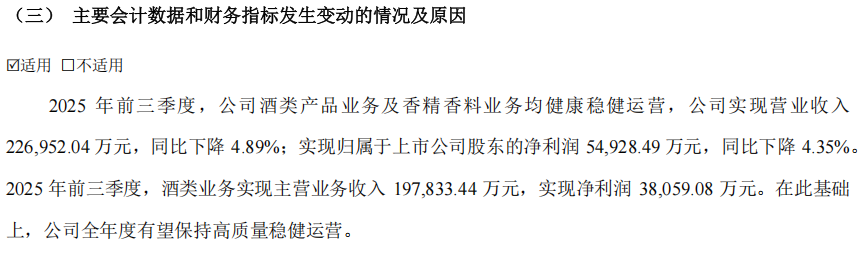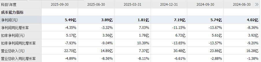 2025年10月27日百润股份公布了2025年三季报:营收22.7亿同比下降4.89%,净利润5.49亿同比下降4.35%;其中第三季度营收7.81亿同比增长2.99%,净利润1.6亿同比下降6.76%;