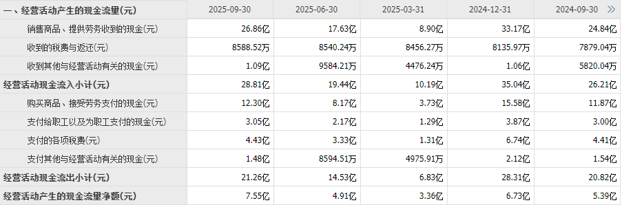 今年三季报公司经营现金流7.55亿远高于净利润的5.49亿,较去年同期5.39亿同比大幅增长40%,公司经营现金流为什么会大幅增长呢?