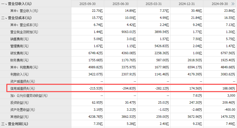 应收账款的大幅下降,在利润表里的信用减值损失,可以看到今年三季报-215万较去年同期188万,下降了403万。