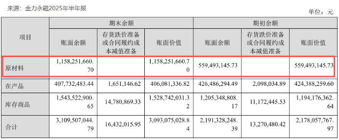 在财报中,公司明确提到,其生产模式是“以销定产”,根据在手订单提前采购稀土原材料及辅材。2025年上半年,公司的存货账面价值达30.93亿,相较2024年底的21.78亿大增42%。