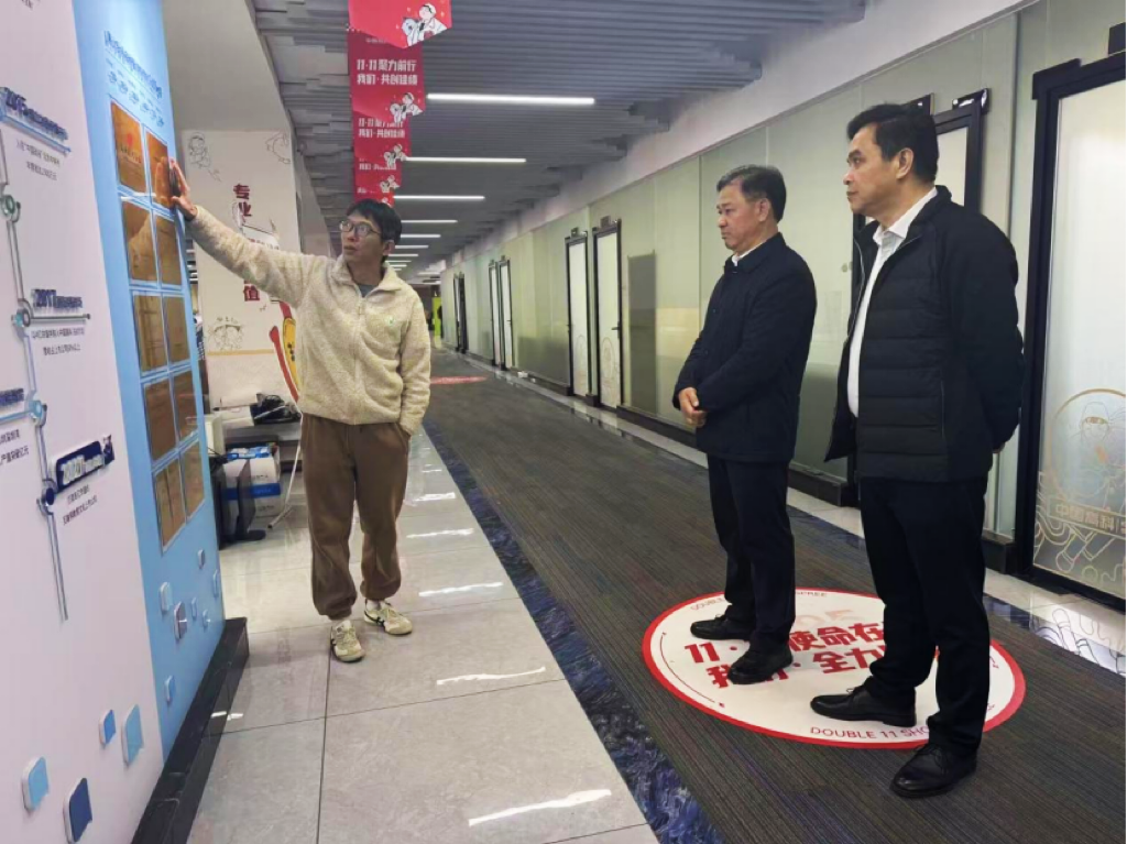 2025年12月15日,广西壮族自治区党委统战部副部长何世恰一行赴中国高科集团旗下子公司广西英腾教育科技股份有限公司(以下简称英腾教育)开展考察调研。考察期间,何世恰副部长深入了解英腾教育的发展情况,并就推动民营科技企业与职业教育融合发展给予指导和建议。英腾教育总经理朱雄志等相关负责人接待并陪同调研交流。