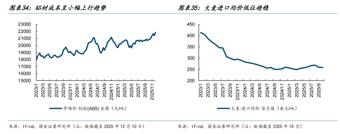 2)预计成本端仍有红利,但较2025年将有明显趋缓,主要系铝罐成本预计会有小幅提升,而大麦、玻璃等成本仍在低位相对平稳。因此,酒企主要通过引导需求端升级进而驱动产品结构优化,以及内部提质增效加码精细化来达到盈利水平持续改善的目标。在成本红利趋缓的背景下,也会强化前述行业价格竞争趋于理性的判断。