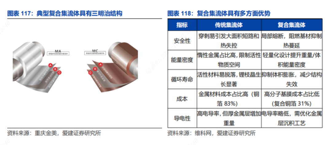 集流体:复合集流体促进电池轻量化,多处于开发验证阶段。传统集流体在固态电池中会限制能量密度提升且存在安全问题,复合集流体在高分子材料两面复合金属以保证导电性并提升综合性能,促进固态电池产业化。其具有安全性、成本和轻量化优势。采用高分子材料复合,能够降低材料成本,削弱热失控风险,并有益于提升电池能量密度。集流体主要布局公司已出货,二线仍处于研发试验阶段。重庆金美,东威科技等技术领先,双星新材、诺德股份等已经送样试验。