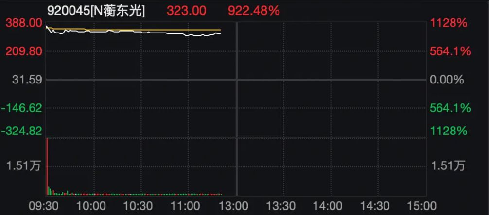 值得注意的是,A股市场今天有两只新股上市,分别为蘅东光和新广益。其中,蘅东光开盘涨幅即超过1000%,盘中最大涨幅高达1128%,成为年内A股市场第二只上市首日盘中即上涨超10倍的新股。在此之前,2025年上市新股中首日涨幅最大的为大鹏工业,其上市首日盘中最大涨幅为1666.67%。蘅东光和大鹏工业均为北交所新股。