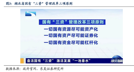 2025年4月,湖北省发布《湖北省深化国有“三资”管理改革推动大财政体系建设走深走实总体工作方案》,提出为深化全省国有资源、资产、资金管理改革,持续推进国有“三资”分散变集中、资源变资产、资产变资本(即“三变”),要求全面盘活国有企业资产,深入开展国企改革深化提升行动,战略性实施实体化、市场化、证券化转型。分类建立资产证券化项目清单,推动国有企业市场并购、战略重组、专业整合、整体上市,优化国有资本布局。创新推动“拨改投”改革,采取“先补后股”“直接股权投资”等方式支持科技成果转化、重大应用技术攻关。2025年10月,湖北省委副书记、省长李殿勋在武汉市调研国有“三资”管理改革并召开推进会部署安排重点任务,指出要更加深刻把握“一切国有资源尽可能资产化、一切国有资产尽可能证券化、一切国有资金尽可能杠杆化”三项原则,进一步推动全省国有“三资”管理改革取得更大成效。