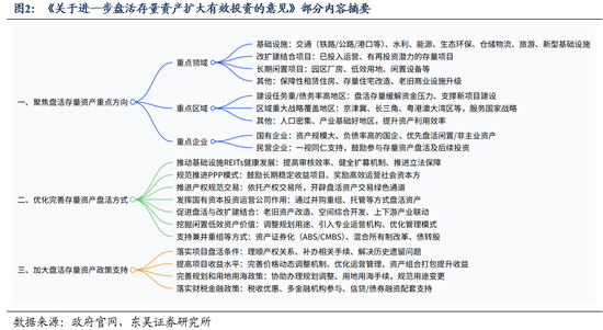 2022年5月,国务院办公厅印发《关于进一步盘活存量资产扩大有效投资的意见》,为地方盘活存量资产的重点区域、方向、方式等提供了直接详细的政策指引,例如提出推动地方政府债务率较高、财政收支平衡压力较大的地区,加快盘活存量资产,稳妥化解地方政府债务风险,提升财政可持续能力,合理支持新项目建设。要求引导支持基础设施存量资产多、建设任务重、负债率较高的国有企业,把盘活存量资产作为国有资产保值增值以及防范债务风险、筹集建设资金、优化资产结构的重要手段,选择适合的存量资产,采取多种方式予以盘活。鼓励国有企业依托国有资本投资、运营公司,按规定通过进场交易、协议转让、无偿划转、资产置换、联合整合等方式,盘活长期闲置的存量资产,整合非主业资产。随后国家发改委和财政部分别发布配套文件,提供了更详细的操作办法。