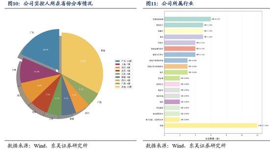 公司所在省份:公司实控人所在省份分布较为分散,在广东的上市公司最多,其他依次分布在上海、浙江、北京、江苏、新疆、四川等省份。