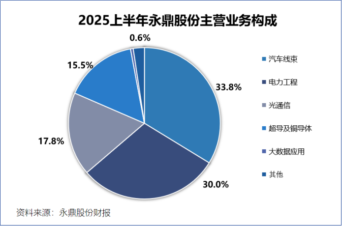 汽车线束是公司业绩的顶梁柱,2025上半年营收占比为33.75%,电力工程业务紧随其后,收入占比近三成。