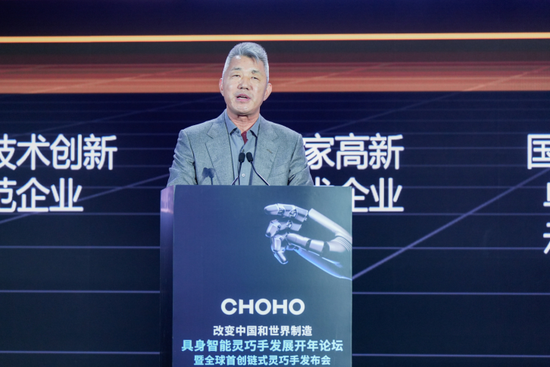 本次发布会现场,青岛征和工业股份有限公司董事长金玉谟发表致辞,全面介绍征和的发展历程、未来战略规划以及愿景。他表示征和工业依托三十年在链传动领域的技术积淀,将链条高负载、高耐磨、高能效、高精度、高抗力的基因,与仿生学、精密制造、智能控制深度融合,成功研发出全球首创的链式灵巧手,也是征和工业从“制造”走向“智造”,从“链系统”走向“灵巧执行”的战略跨越。