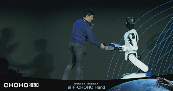 机器人的发展,不单是“硬件+软件”的加法,更是整合资源、协同研发、优势互补的跨行业联动。现场,智元机器人、卓益得机器人搭载“臻手·CHOHO Hand”完成了互动展示、递水演示以及台下近距离静态展示。这意味着征和提出的“链动真实场景,满足极致追求”不仅是口号,更是多生态联动、跨产业融合的未来发展方向的具象显现。