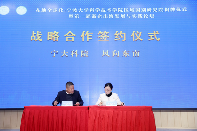 2026年1月9日,“在地全球化:宁波大学科学技术学院区域国别研究院揭牌仪式暨第一届浙企出海发展与实践论坛”在宁波举行。本次活动由宁波大学科学技术学院主办,汇聚政府官员、学界专家、企业家代表等百余位嘉宾,通过揭牌签约、成果发布、主旨演讲与圆桌对话等环节,搭建起学术、产业与政策的跨界交流平台,为浙企出海注入智力支撑。
