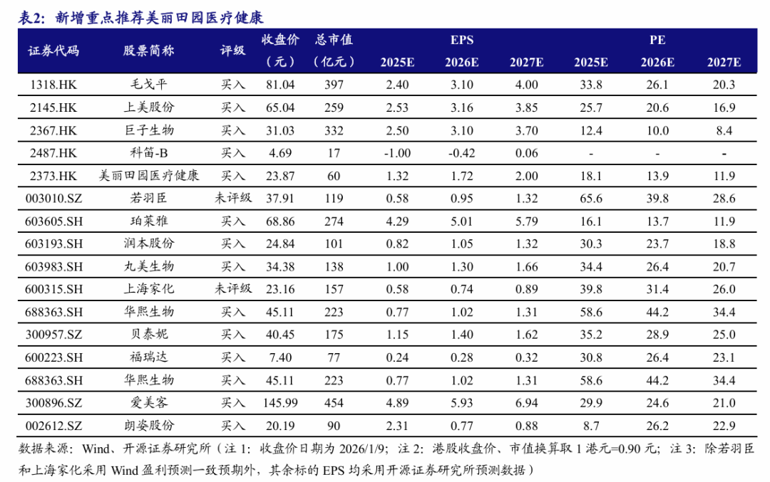 投资建议:新增重点推荐美丽田园医疗健康