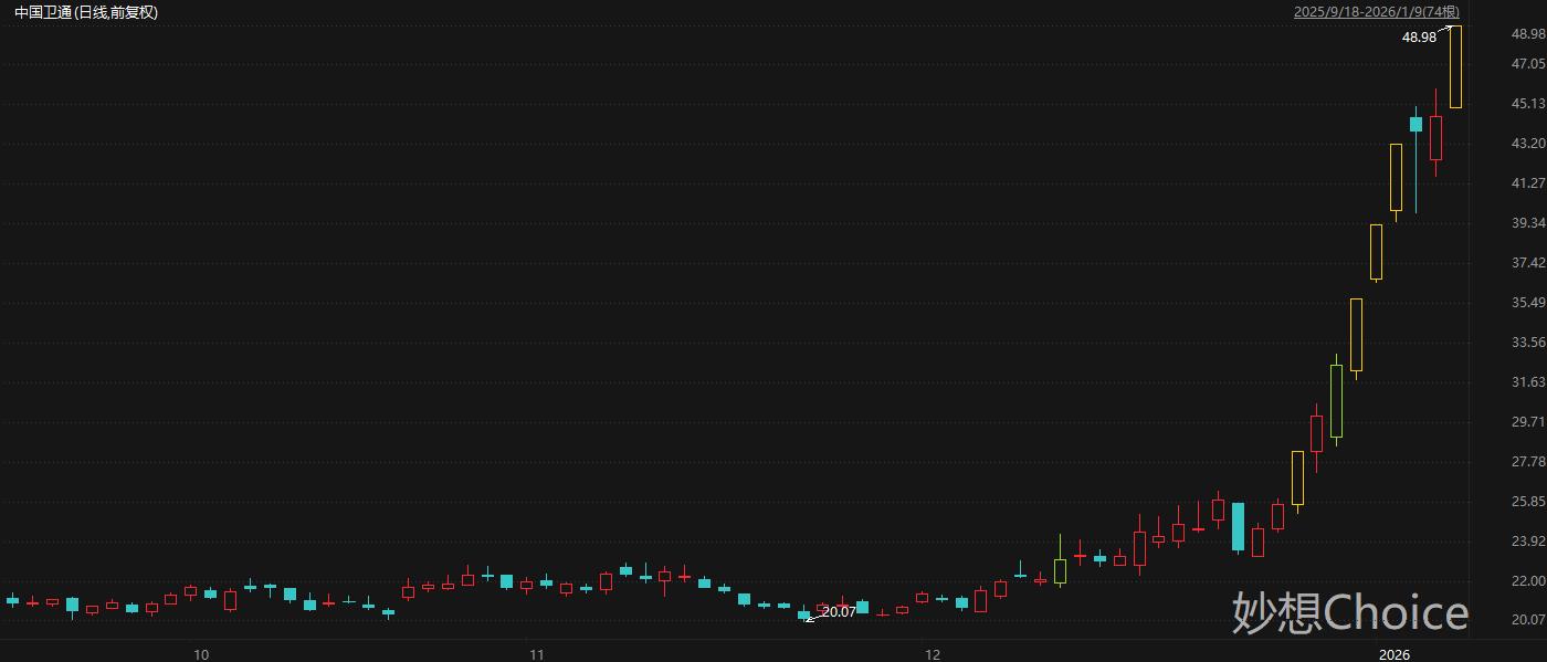 中国卫通周五收盘录得9天5板。中国卫通12月17日在互动平台表示,公司已建成高轨卫星广播通信及卫星互联网综合信息服务体系,基本实现卫星运营服务、网络系统集成和综合信息服务三大主业协同发展。公司依托全面投入使用的国内首张高轨宽带卫星互联网,把握卫星互联网重点应用场景,为我国及“一带一路”沿线的航空、航海、应急、能源、林草等行业及普遍服务用户提供高速的卫星互联网接入服务,有效满足空中旅行与远洋航行中对于宽带通信的需求。