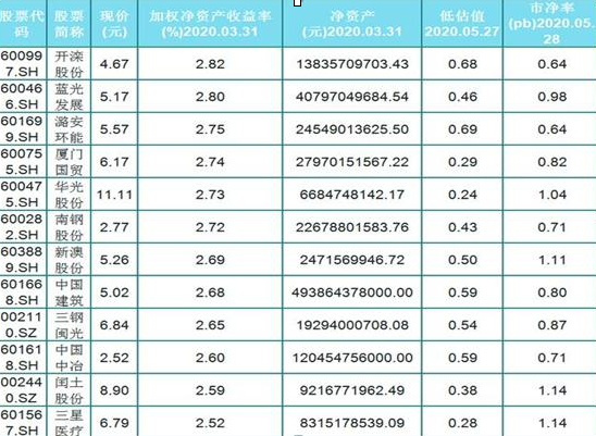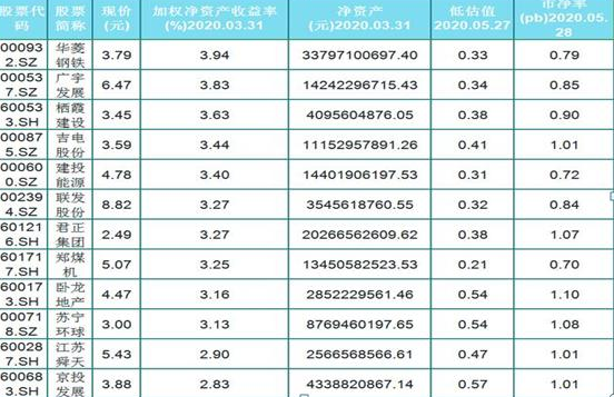 50只估值偏低的低价股(名单),其中前20只分别是: