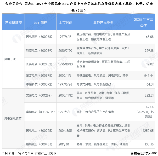 5、风电EPC行业上市公司风电EPC业务规划对比