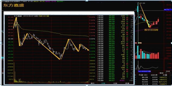 2、结合分时图判断,庄家在分时图经常用的出货手法是缩量拉高后瞬间出货打低股价,这样一波一波,在分时图上就显示出多个峰谷。
