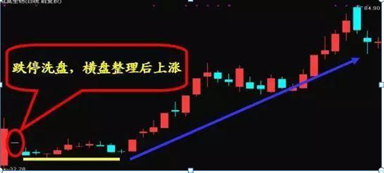 主力用跌停来加大市场恐慌气氛,一般而言,跌停时都会伴随一些利空消息。识别的方法得判断利空只是一时的,比如新洋丰重组未通过,但重组又是一件大概率事件,短期利空长期有想像空间。并且,跌停过后必须经过较为充分的横盘缩量整理(必须得是横盘平台整理),这代表着筹码在庄家手中,而非分散存在的。