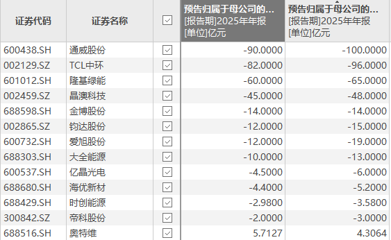 这只是冰山一角。2026年开年以来,包括TCL中环、晶澳科技在内的五家光伏龙头企业,2025年合计预亏已超过289亿元。