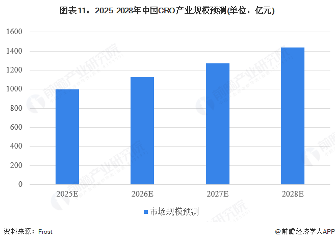 根据Frost&Sullivan预测的数据,中国CRO行业市场规模呈持续稳步增长态势,到2028年,有望突破1440亿元。政策端,国内“十四五”医药工业规划、创新药医保谈判等政策持续倒逼药企加大研发投入,以及药品监管国际化,为CRO行业提供了政策红利;市场端,本土创新药、生物类似药及基因治疗等新兴疗法的研发需求激增,因中国成本优势、人才储备、临床资源各方面条件都在扩大优势,全球医药研发外包正在向中国转移,进一步扩容了市场;产业端,长三角等核心集群的药明康德、泰格医药等头部企业,已形成规模效应与技术壁垒,能承接更复杂的全球研发订单,同时医疗器械CRO、伴随诊断CRO等细分领域的拓展也在打开新增长空间。尽管行业存在同质化竞争、合规成本上升等挑战,但整体机遇大于风险,预计未来5年仍将保持双位数增速。