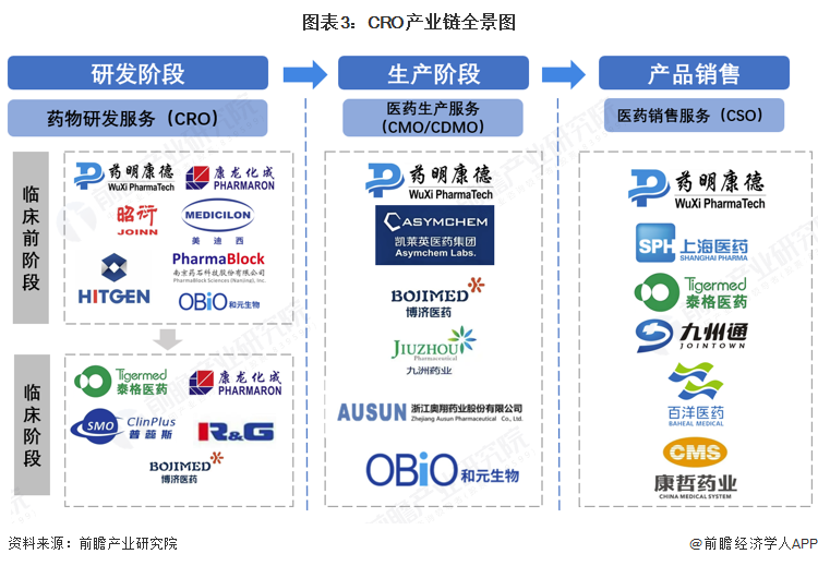 行业主要上市公司:目前国内CRO行业主要的上市公司有药明康德(603259.SH)、康龙化成(300759.SZ)、泰格医药(300347.SZ)、凯莱英(002821.SZ)、昭衍新药(603127.SH)、九洲药业(603456.SH)、皓元医药(688131.SH)、博腾股份(300363.SZ)、成都先导(688222.SH)、药石科技(300725.SZ)等。
