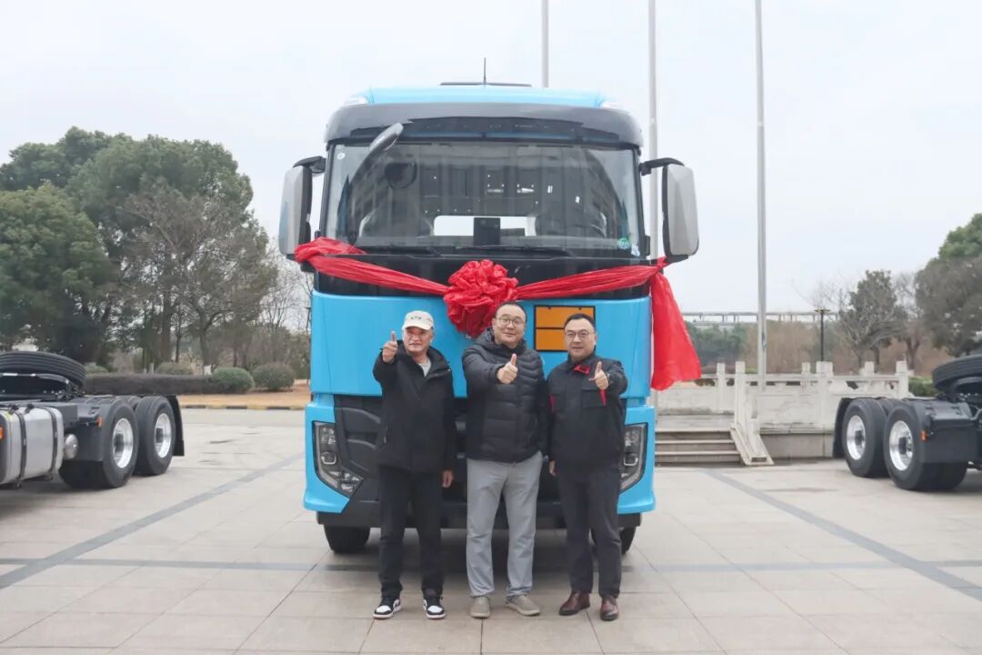 交付环节成为本次仪式的亮点之一。汉马科技代表沈龙飞亲手将首批“星瀚”重卡钥匙交付给承运商广西明豪代表黄新宇,标志着“运营方+制造方+承运方”的三方联动模式正式落地。这一创新模式将通过科技赋能与管理优化,帮助承运商提升运营水平、控制运输成本,构建高效协同的运输生态。