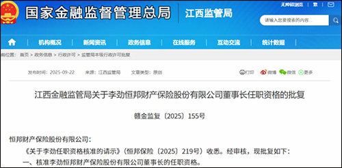 国家金融监管总局网站2025年9月22日消息,李劲获批担任董事长,相关核准文件关联江西省金融监管局批复,原董事长潘淦因年龄原因卸任。这位新任董事长同样来自江西金控体系,曾任国信证券江西分公司总经理等职。