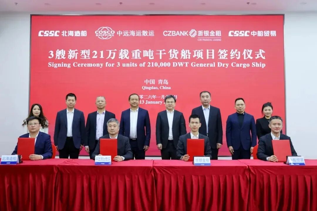 同日,中远海运散运牵头与北海造船、中船贸易、浙银金租签约3艘新型21万吨级干货船(Newcastlemax)。与传统纽卡斯尔型主要跑大宗散货不同,这批新船强调兼具散货、件杂货及集装箱装载能力,更便于在特定贸易走廊实现“双向货源”组织:回程不只靠压载或单一货种,而是有机会通过工程设备、钢制构件等项目货提升返程装载率与综合收益。