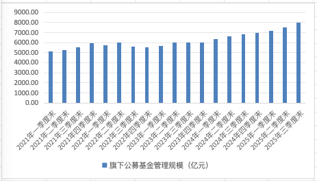 Wind数据显示,截至2025年三季度末,华安基金公募管理规模为7984.57亿元,较2021年末的5968亿元稳步增长,但结构出现失衡。