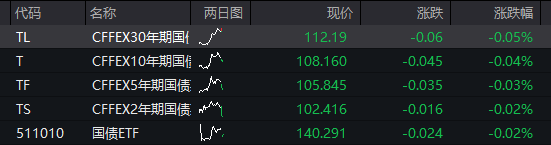 债市:国债期货全线下跌,截至发稿,30年期主力合约跌0.05%,10年期主力合约跌0.04%,5年期主力合约跌0.03%,2年期主力合约跌0.02%。