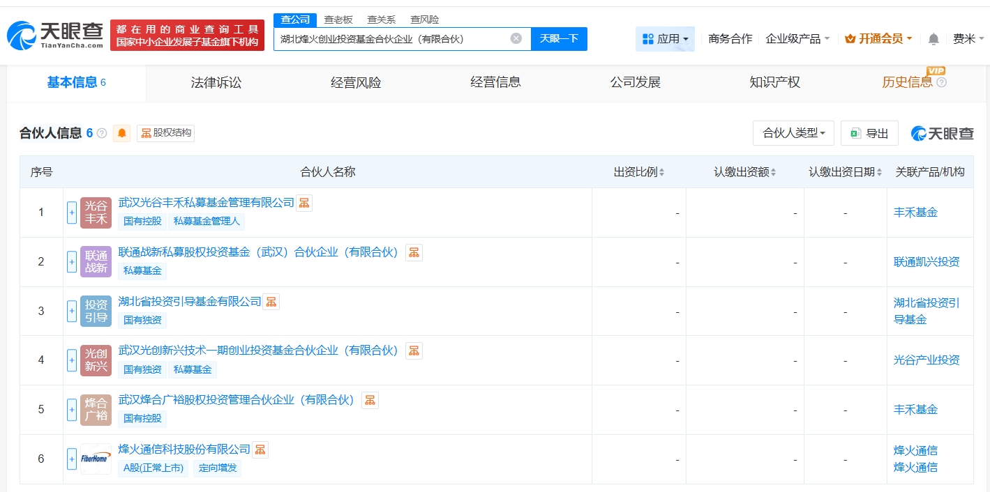 每经AI快讯,天眼查工商信息显示,近日,湖北烽火创业投资基金合伙企业(有限合伙)成立,执行事务合伙人为武汉光谷丰禾私募基金管理有限公司,出资额10亿元人民币,经营范围为创业投资,以私募基金从事股权投资、投资管理、资产管理等活动,由烽火通信(600498)、中国联通旗下联通战新私募股权投资基金(武汉)合伙企业(有限合伙)、湖北省投资引导基金有限公司等共同出资。