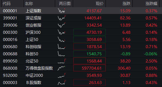 A股:截至发稿,沪指涨0.37%,深成指涨0.57%,创业板指涨0.42%。