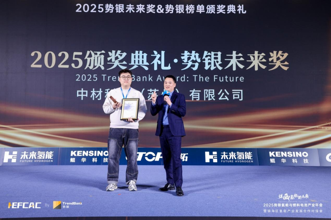 值得一提的是,在此次势银氢燃年会未来奖颁奖晚宴上,中材科技(苏州)正是凭借其全面的高压储氢技术自主化体系、覆盖“车、站、运”等多元场景的产品矩阵以及持续领先的市场表现,荣获大会颁发的综合型大奖——“2025势银未来奖”。