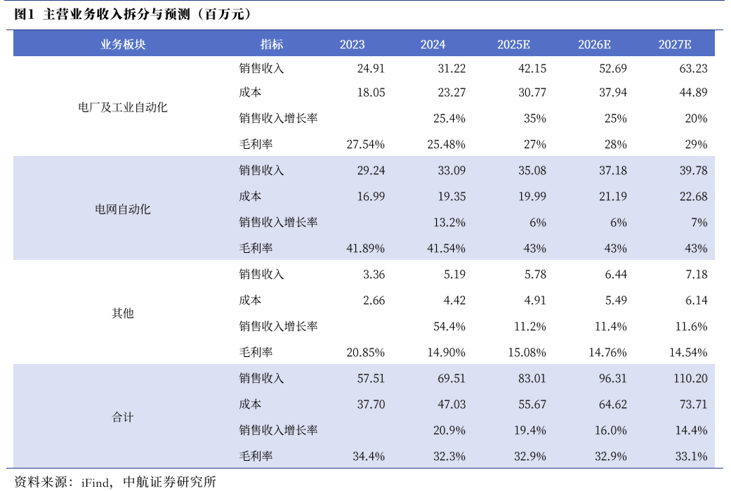 投资建议:电网业务有望受益于国内外电网改造投资提速,电厂和工厂自动化业务有望受益于AIDC、新能源、节能改造投资的增长。预计2025/2026/2027年公司归母净利润分别为8.3/9.4/10.9亿元,EPS分别为1.0/1.1/1.3元/股,当前股价(1月21日收盘价)对应PE分别为38.8/34.2/29.6。