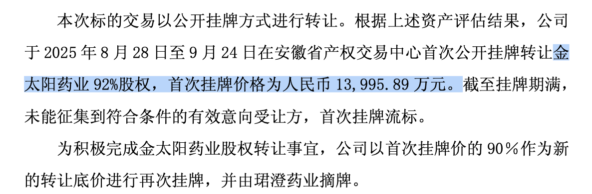 金太阳药业曾是金种子酒多元化布局的重要一环,但在白酒主业尚且自顾不暇的情况下,非核心资产反而成为负担。