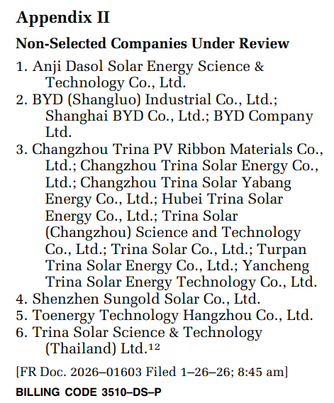 据悉,上述终裁结果原计划不晚于2025年10月20日公布,由于美国联邦政府停摆而被推迟,最终于2025年12月29日商务部完成并签署终裁决定。