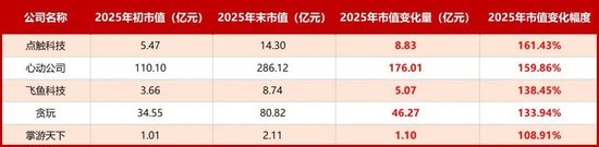 除上述外,值得关注的公司还有靠着小游戏2025上半年收入增长343%,同时扭亏为盈的飞鱼科技,2025年市值增长翻倍;市值有小幅度增长,同时也坐稳游戏上市公司市值TOP10的儒意;市值增长近6成的恺英网络等。