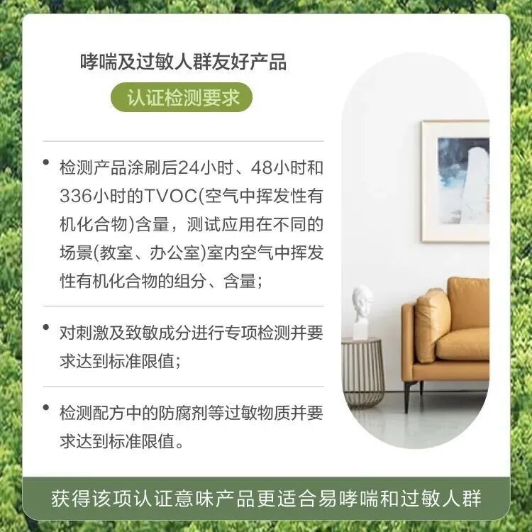 84000 + 家庭的选择,源于产品对家居健康核心痛点的精准解决。作为中国涂料品牌中首款通过国际过敏标准有限公司(ASL)哮喘 & 过敏友好 ® 认证的产品,易呼吸系列专为易过敏、哮喘人群及有老人、儿童的家庭设计,严选抗过敏配方,通过六重国内外权威检测,从源头杜绝人为添加甲醛、苯、VOC 等有害物质。同时,产品搭载活性竹炭除醛因子核心技术,可主动捕捉并分解室内空气中的异味与有害气体,在气味控制方面表现卓越:先后斩获行业首个 SGS 独立慧鉴 “气味轻微” 认证、国检 i + 金级气味认证,真正实现 “即刷即住” 的健康居住体验,让家庭装修无需为等待散味烦恼。