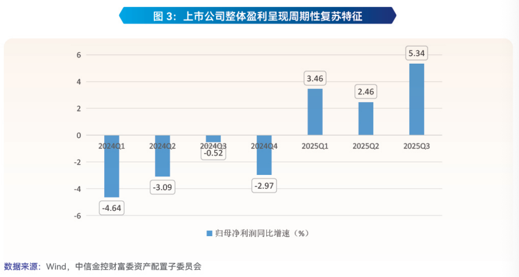 估值方面,经过2024年、2025年两年修复,估值在2026年大幅抬升的难度增加,市场投资机会将更多来源于上市公司盈利增长。随着国内PPI逐步回暖与产业政策精准落地,上市公司整体盈利有望实现温和修复,万得全A归母净利润同比增速提升(如图3),呈现周期性复苏改善特征。另一方面,伴随着人工智能等科技进步持续推进,相关产业链在2026年有望出现收入和盈利的初步兑现,为市场注入新的成长动能。