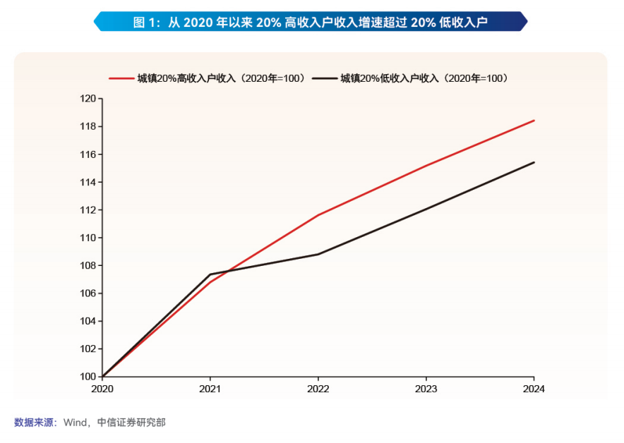 (一)从短期来看,推动“投资于人”的核心政策诉求在于扩大内需,我们认为最紧迫的或在于弥合“K型”复苏带给不同收入群体的体感温差。